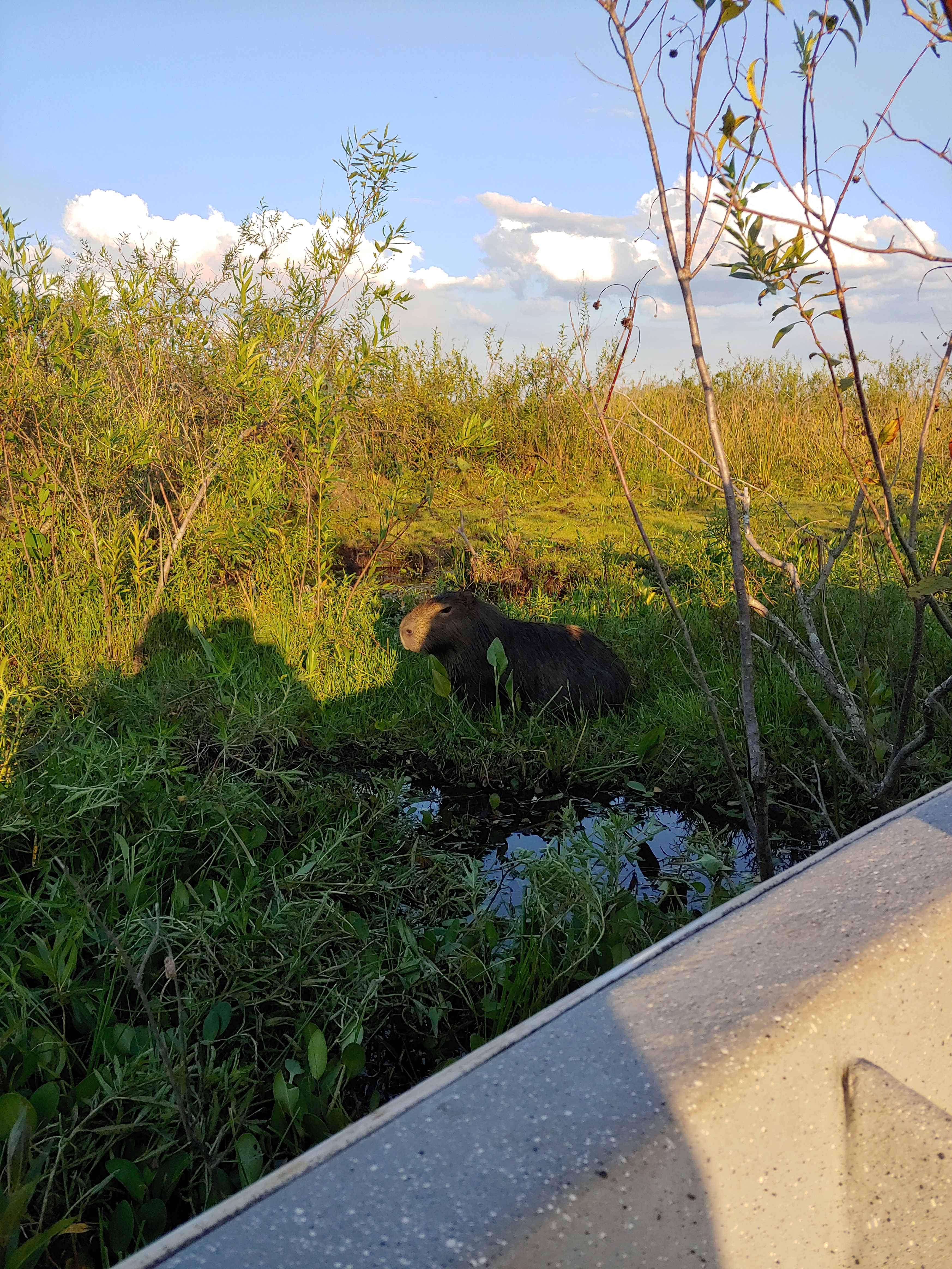 Auf einer Bootstour durch die Lagune bei Carlos Pellegrini gibt es Wasservögel und Kaimane zu entdecken. Immer wieder sehen wir Familien von Wasserschweinen, die gemütlich das Gras am Wegesrand fressen, oder sich im Schlamm suhlen.