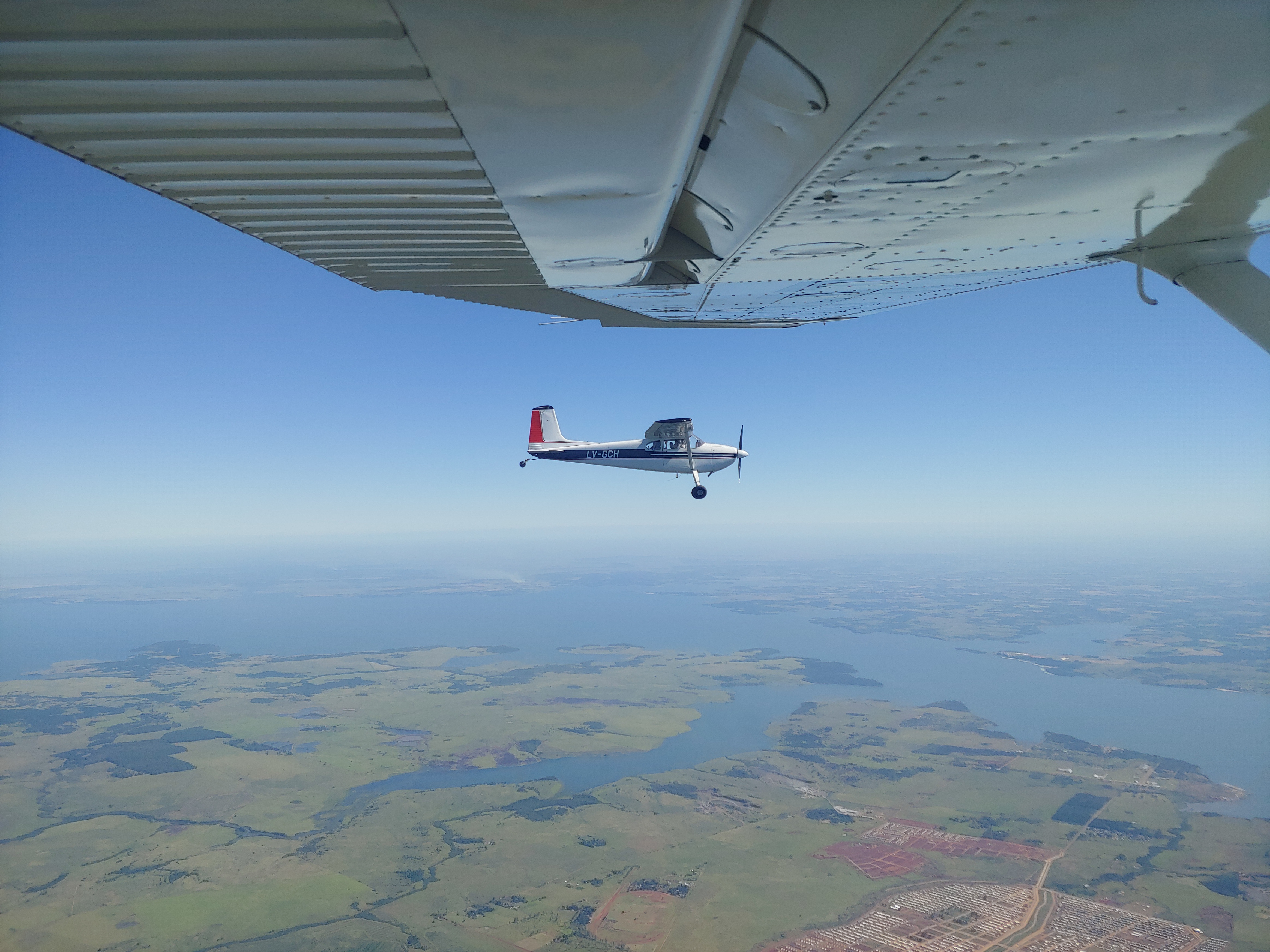 An der Grenze Paraguay Argentinien fliegen wir nach Norden. Das Ziel ist Iguazu. Vor der Landung drehen wir tatsächlich noch eine Runde über den Wasserfällen. Ganz Klasse, so haben wir einen ersten Eindruck des Wasserlaufes und der Ausdehnung der Wasserfälle.