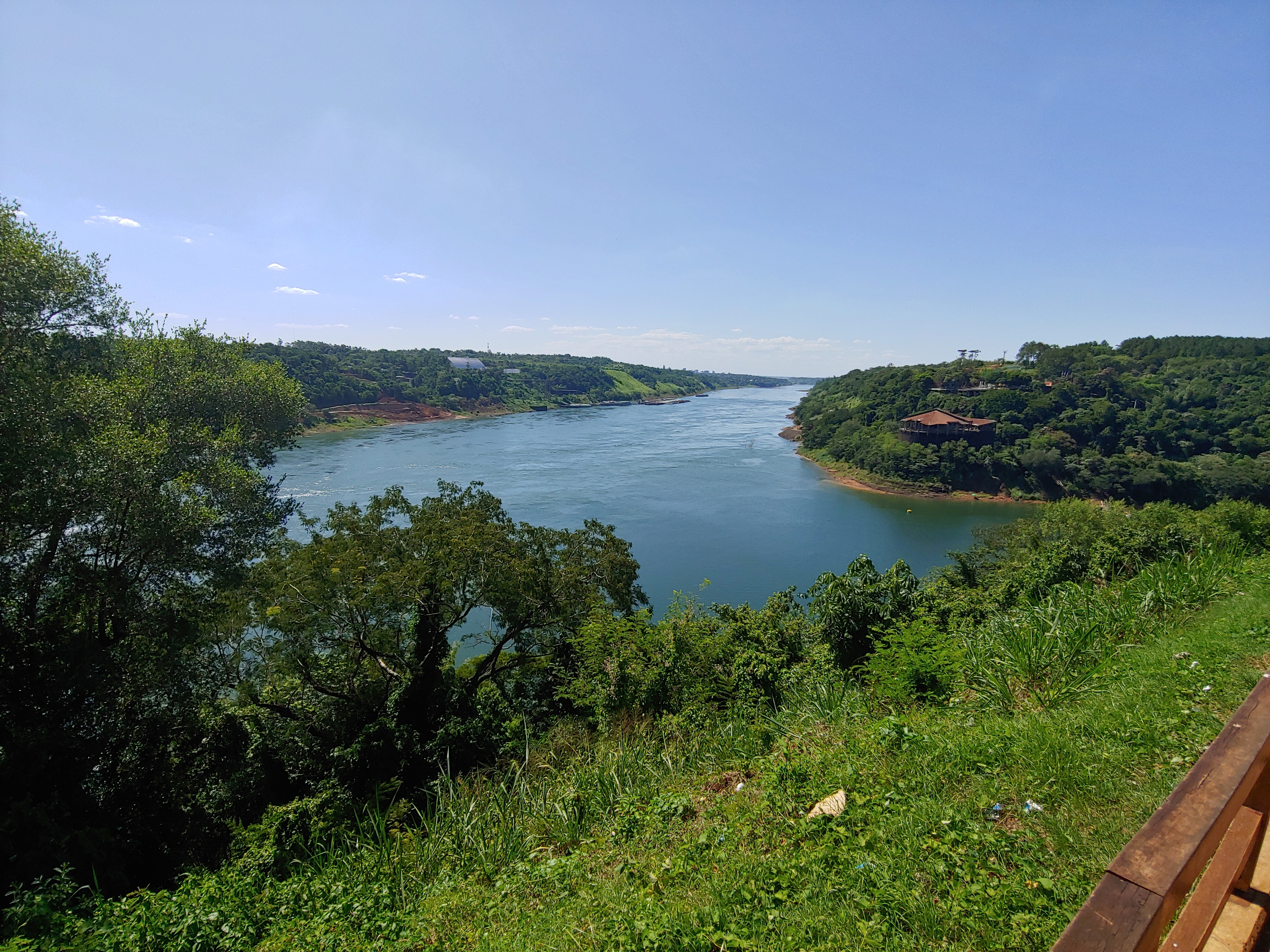 Der Nachmittagsspaziergang bringt uns zum Dreiländereck Brasilien, Argentinien, Paraguay. Gebildet Von den Flüssen Parana und Iguazu. Unser Hotel liegt ganz in der Nähe.